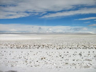 Bientôt la neige recouvre les prairies, les moutons broûtent entre les tâches blanches, le ciel se fait pastel et en arrière plan de ces plaines immensément vides apparaît la blancheur des premiers glaciers.